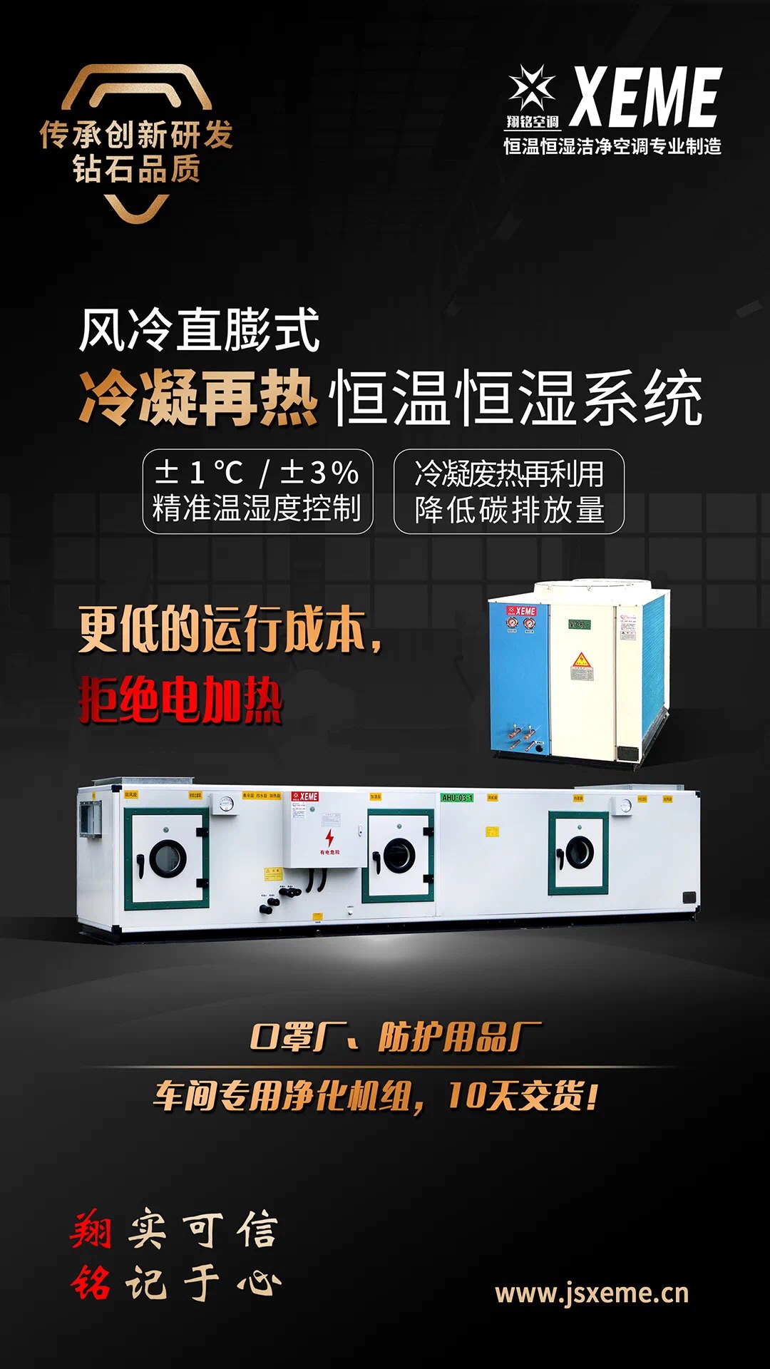 翔銘為此次抗疫研發出口罩工廠專用機組——恒溫恒濕潔凈空調機組。